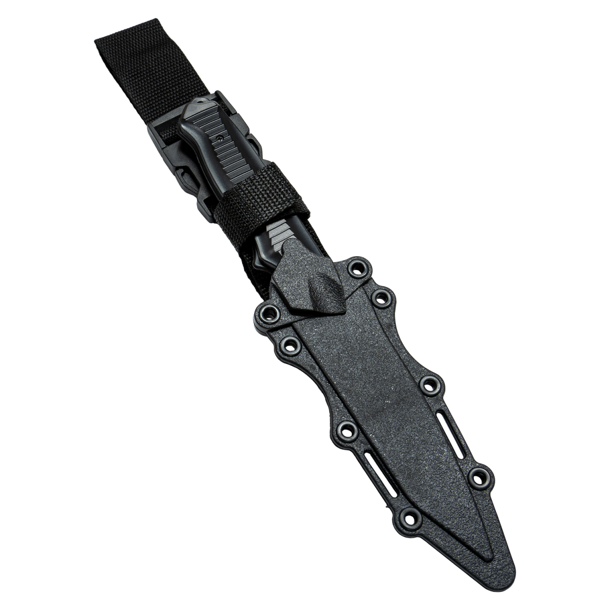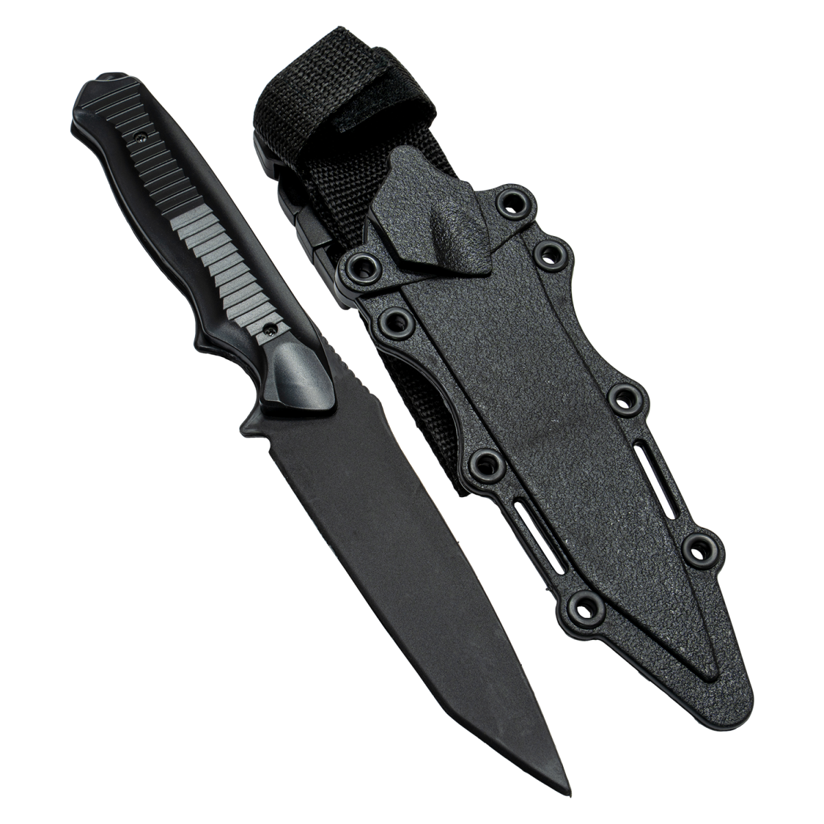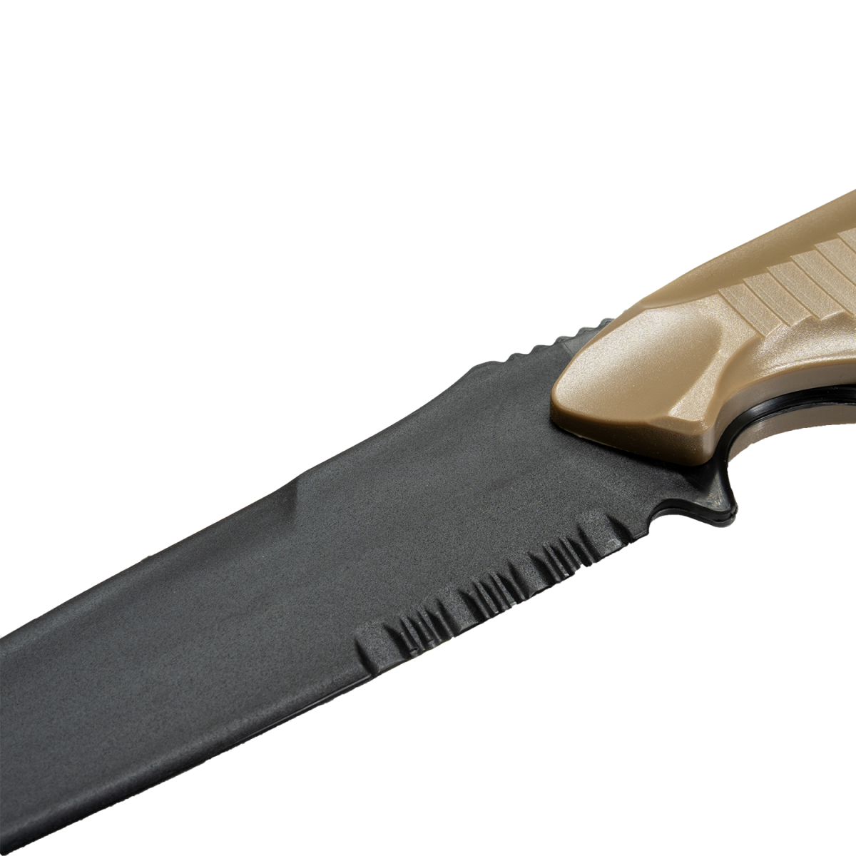 樹脂製のシースが付属したゴム刃のダミーナイフです。