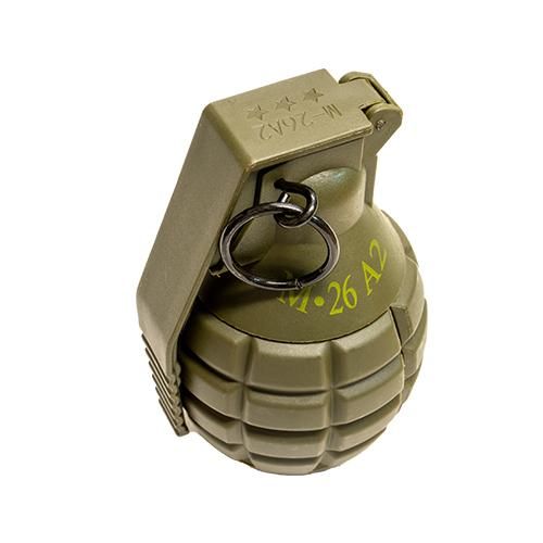 ピンを外した状態で投げると着地の衝撃でBB弾が飛び出すスプリング式のインパクトグレネードです。M26A2と書かれていますが、Mk2に近い形状になっています。