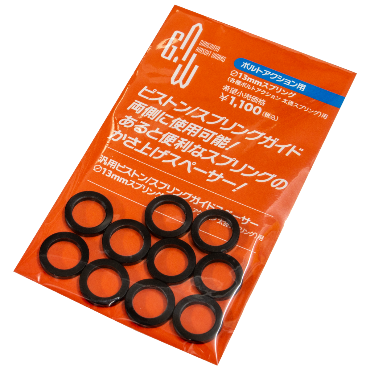 電動ガンのピストン内部やスプリングガイドに装着して使用するスプリングスペーサーのセットです。
