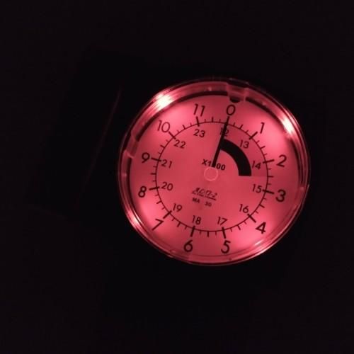 針は上部ダイヤルで調整可能で、電池を入れた状態でスイッチをONにすると赤色LEDが点灯します。
