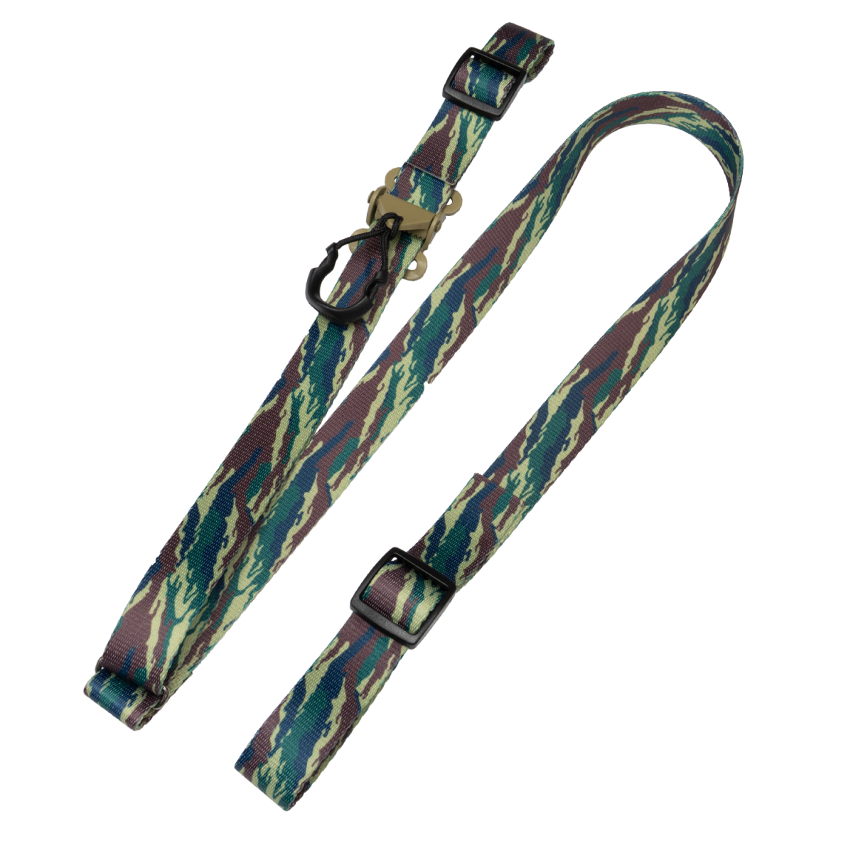 タブを引っ張りながら前後にスライドすることで瞬時に長さを調節できる2点式スリングです。