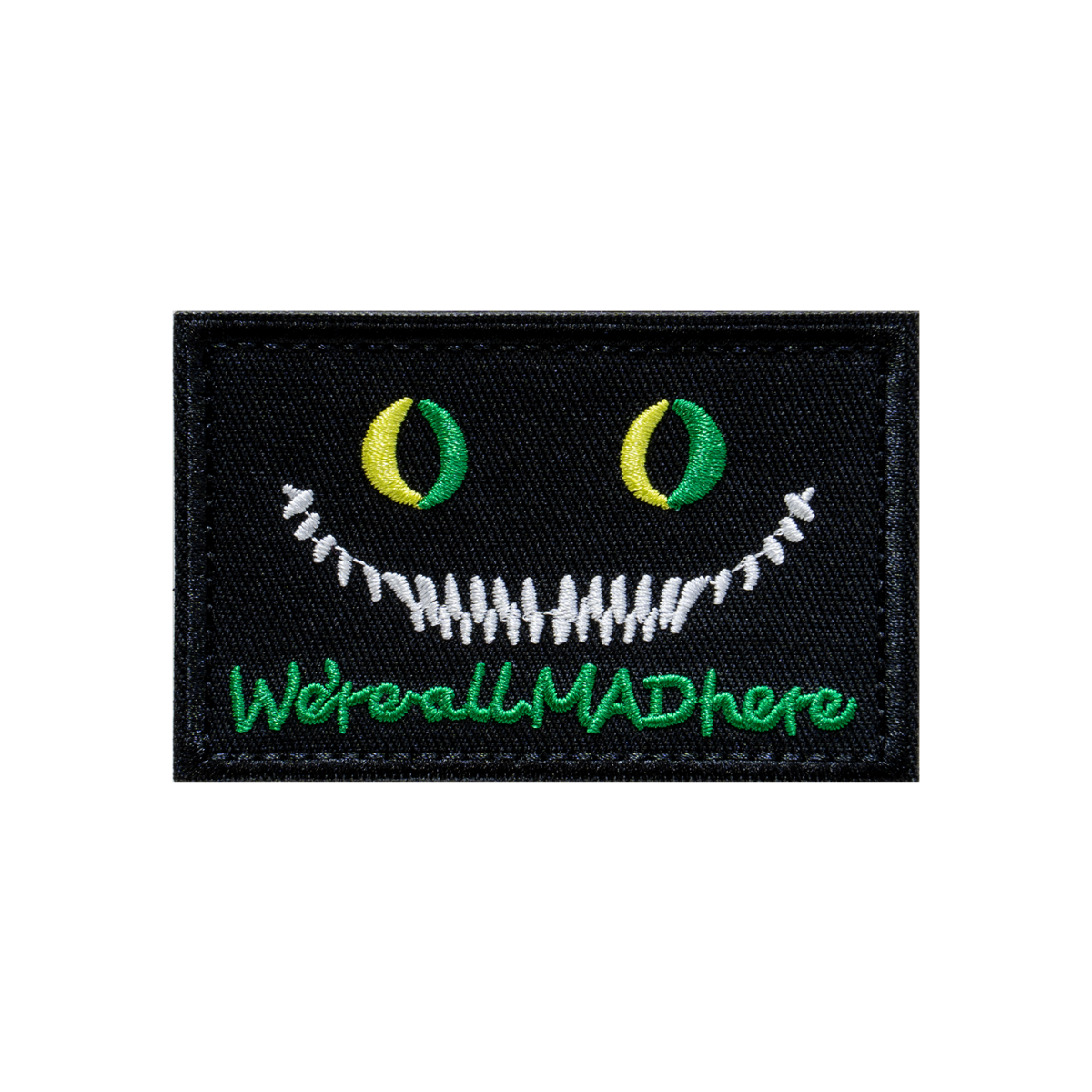 不思議の国のアリスに登場するチシャ猫のセリフをモチーフにしたワッペンです。