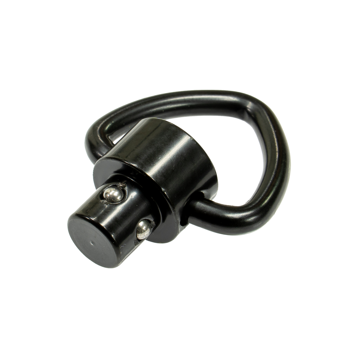 中央にある丸い突起を押すことでベアリングが引っ込み、簡単に取り外しできる構造になっています。MS3などの金具付きスリング向きの形状となります。