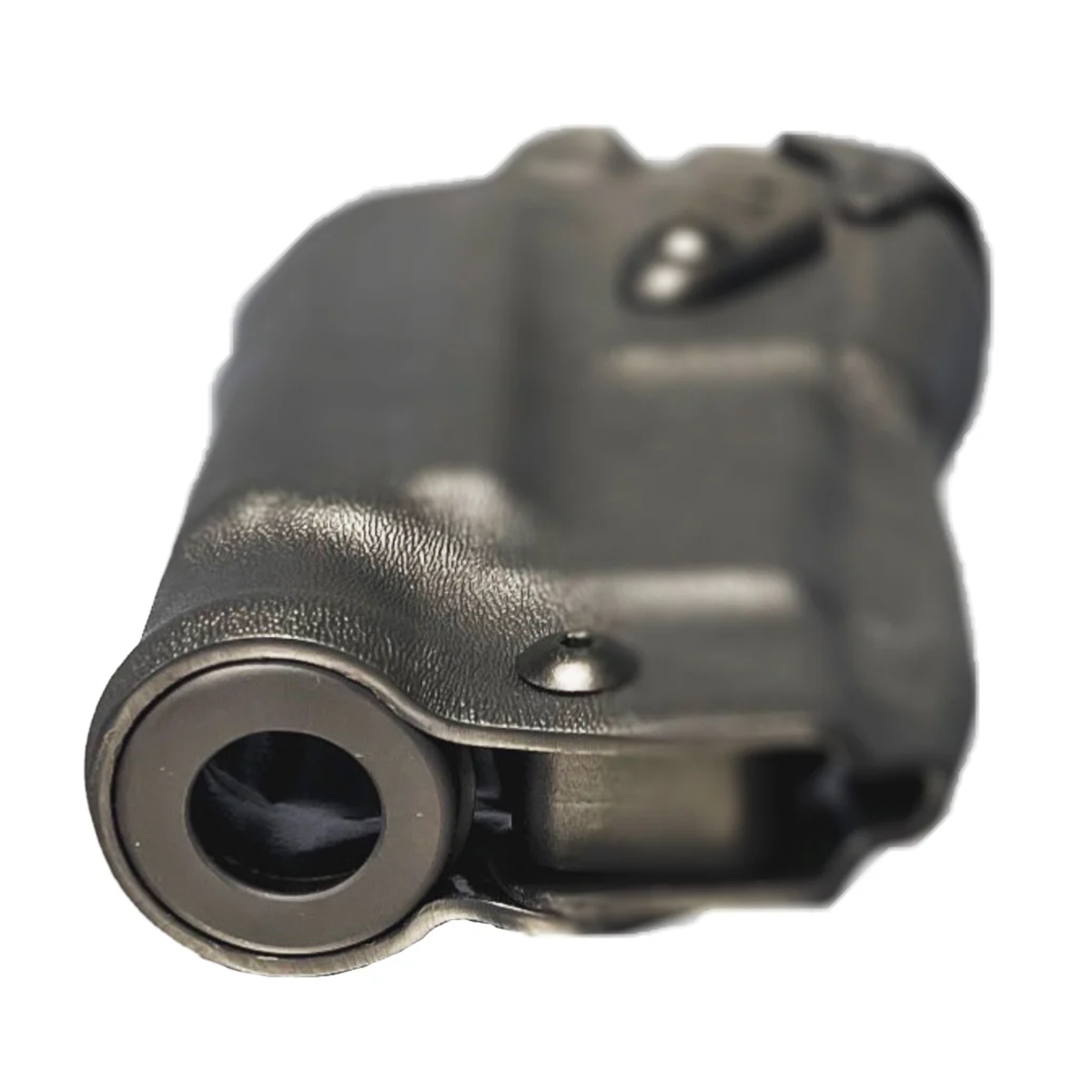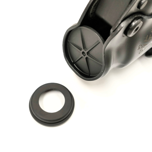 純正のライトプラグではホルスター内に泥、砂、空薬莢などの異物が入った場合、ホルスターに銃を戻すことができなくなる場合がありました。その対策としてライトプラグを外すことが多いですが、ホルスターの強度が下がってしまいます。この製品はアルマイト加工のアルミ合金で作られておりホルスターの強度を維持したまま異物を除去できるようになります。
