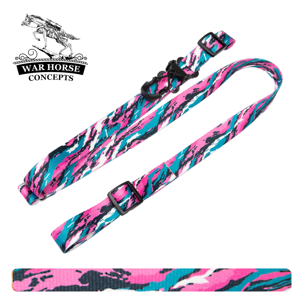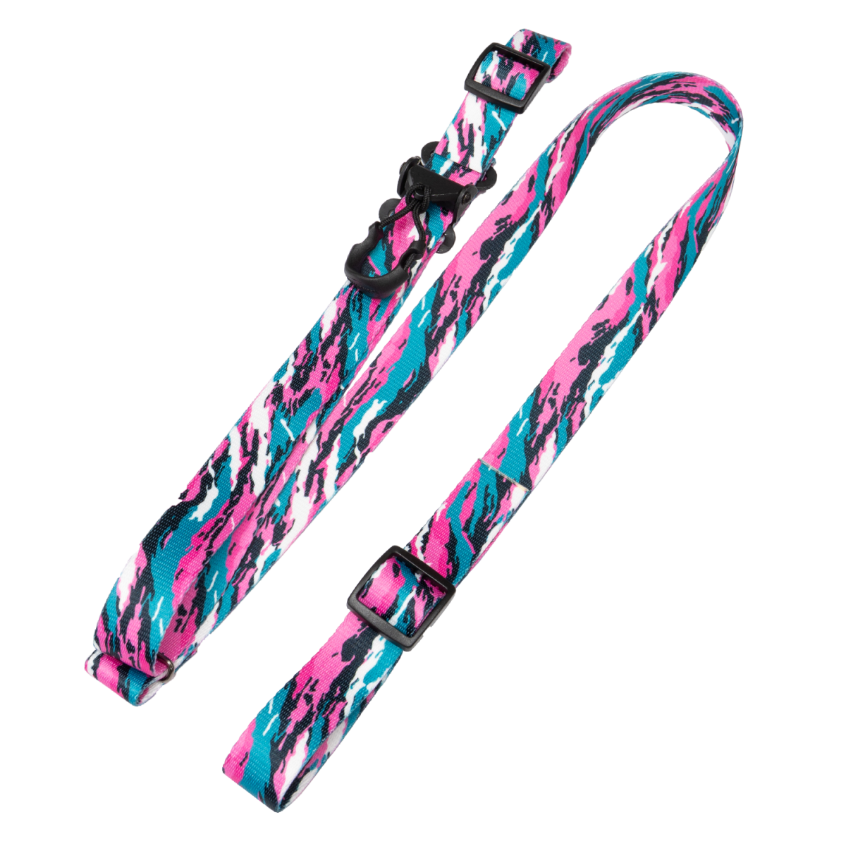タブを引っ張りながら前後にスライドすることで瞬時に長さを調節できる2点式スリングです。