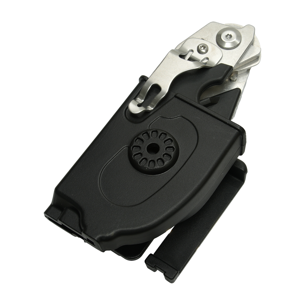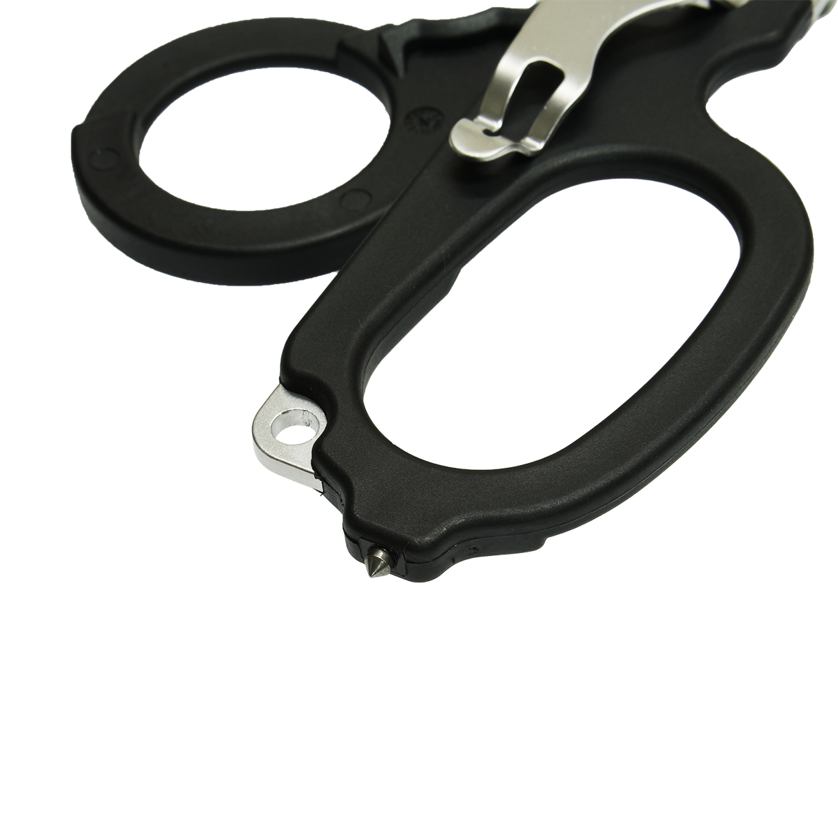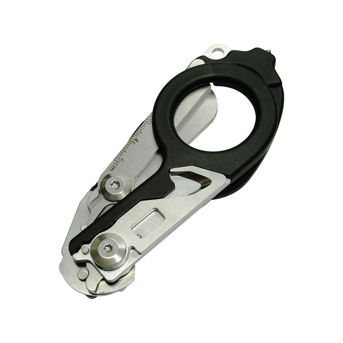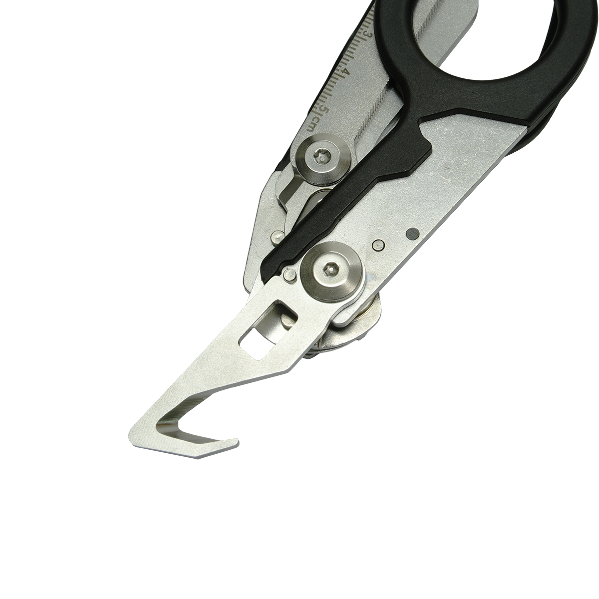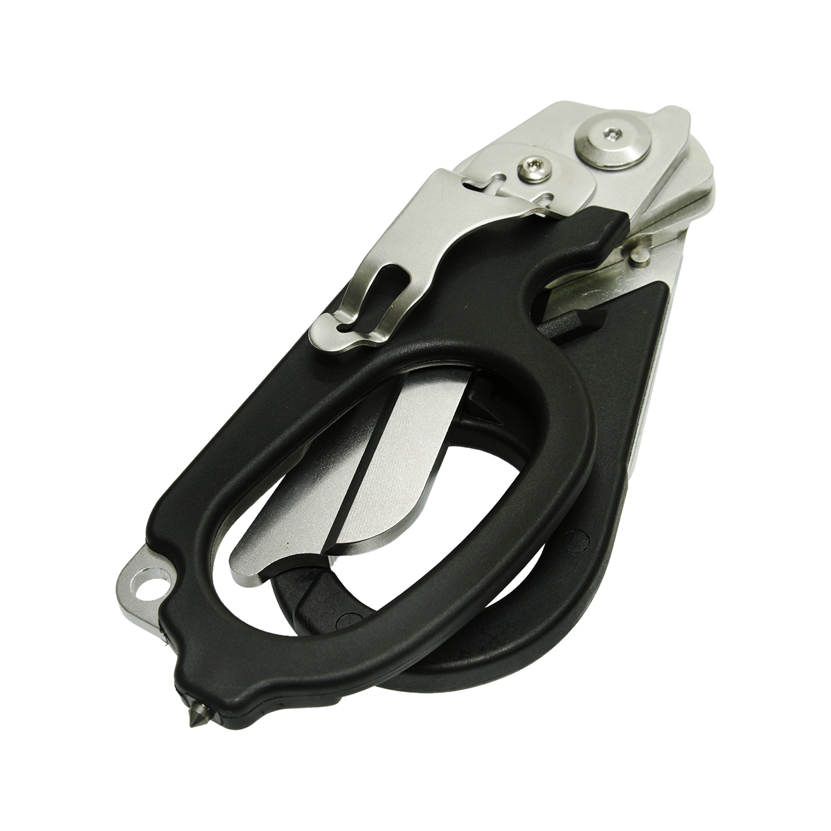 シートベルトカッター、ガラス割り用スパイク、酸素ボンベレンチなど衛生兵やレスキュー隊向けの機能が充実しています。