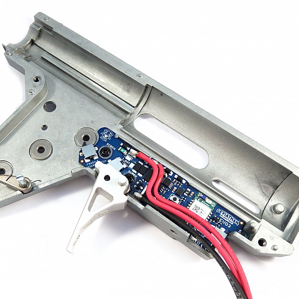 また、ギアボックスへの小加工で取り付けられる逆転防止ラッチが付属し、これを使用することでノーマルのEVO3では不可能だったプリコック射撃や多種多様なモーターの使用、制御が可能となっています。