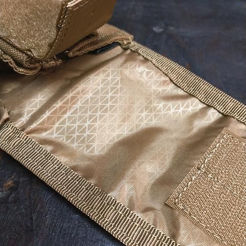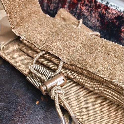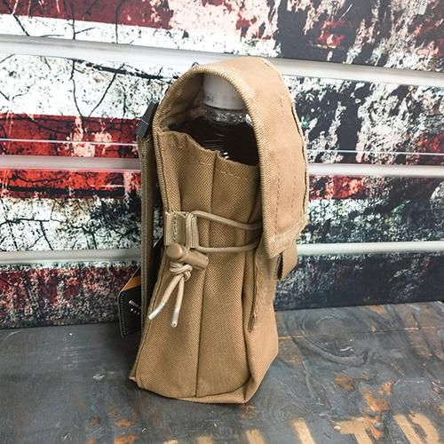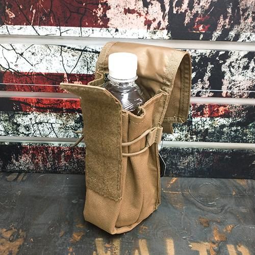 ゴム紐でサイズとテンションの調節が可能な水筒用ポーチです。
