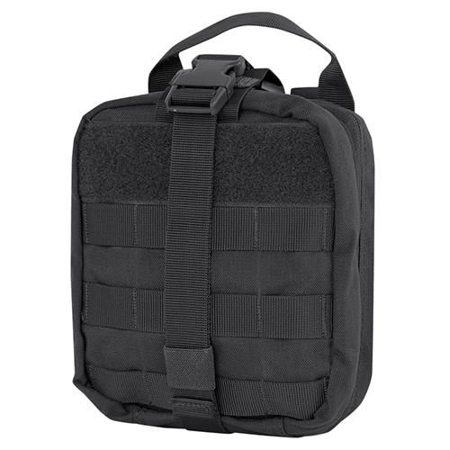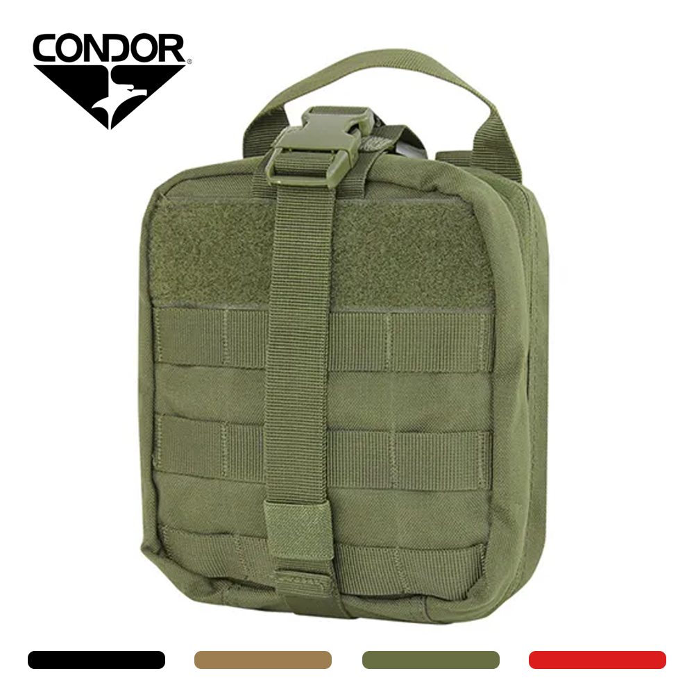 ポーチ本体とMOLLE取り付け部分がベルクロで接続されている為、バックルを外した状態でハンドルを引くとポーチを取り外すことが可能です。