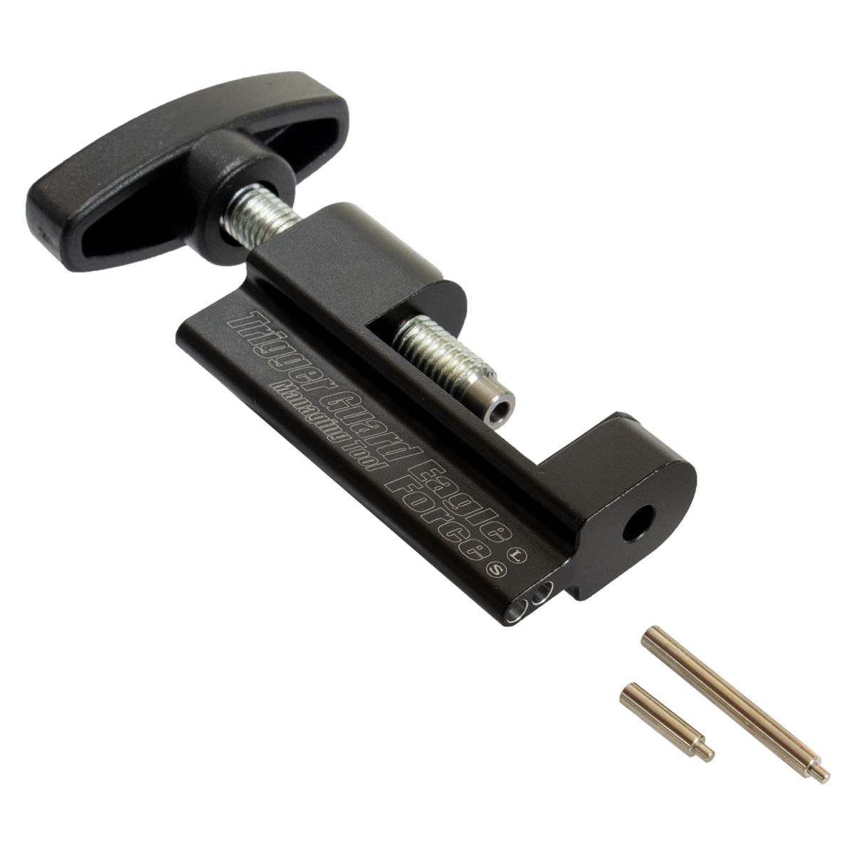 通常のハンマーを使用した方式と比べ、傷が付きにくく本体への負担が少ないのが特徴です。銃に触れる部分にはラバーテープが取り付けられています。