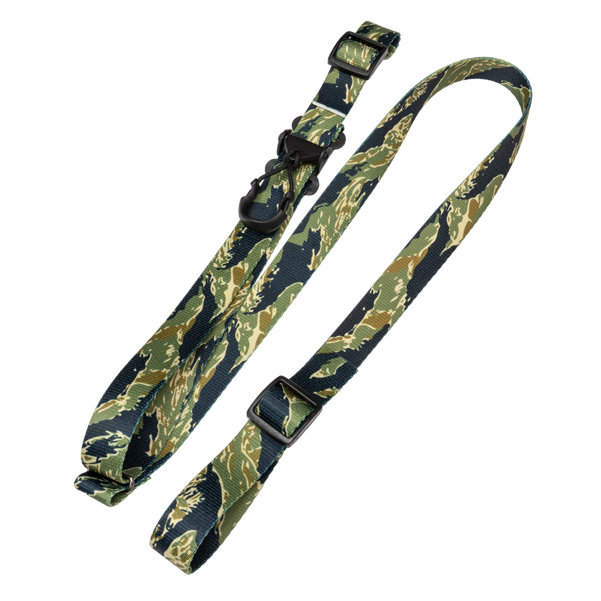 タブを引っ張りながら前後にスライドすることで瞬時に長さを調節できる2点式スリングです。