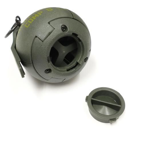ピンを外した状態で投げると着地の衝撃でBB弾が飛び出すスプリング式のインパクトグレネードです。