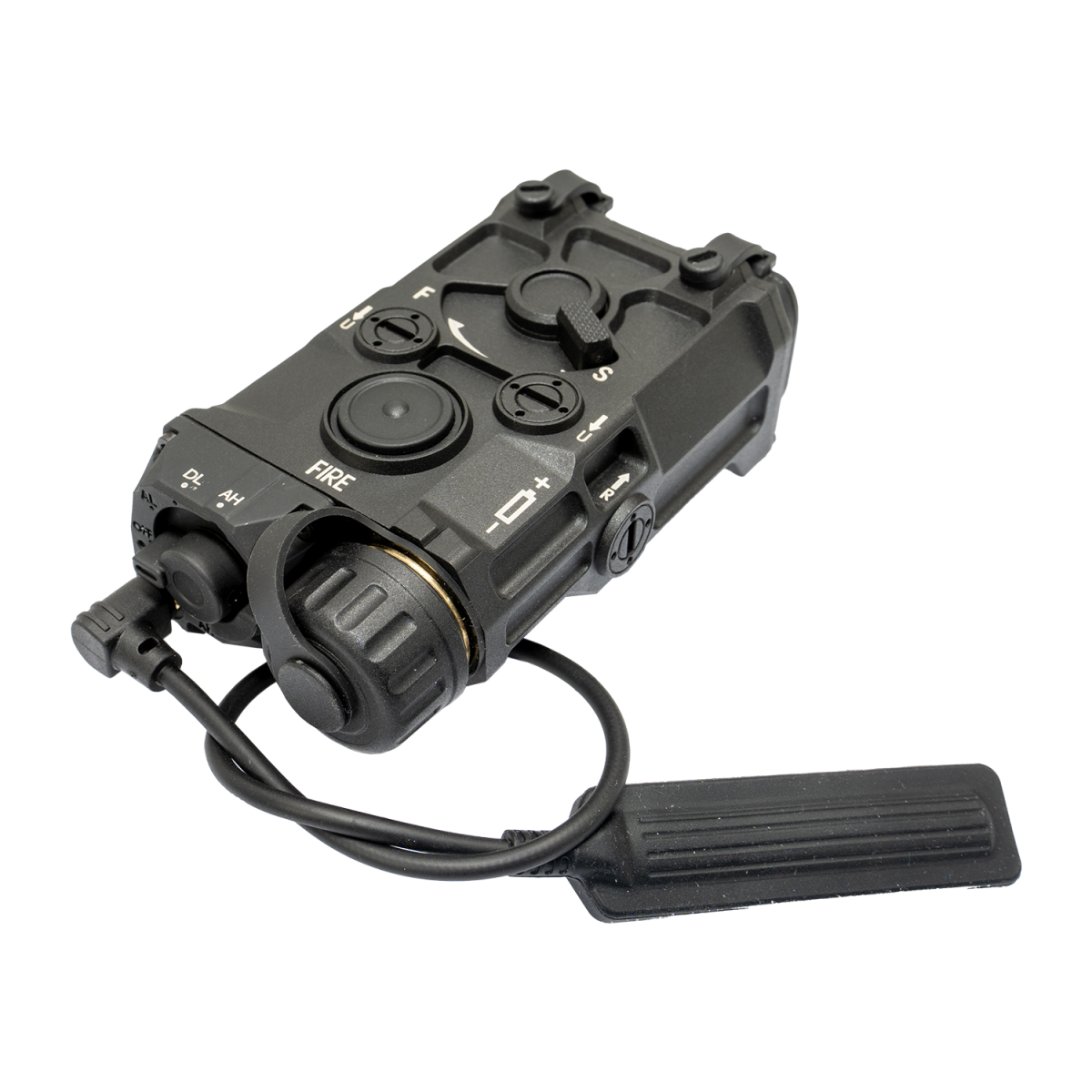 サイズはほぼNGALと同等でPEQと比べてかなり小さくなっています。リモートスイッチが付属しています。実物はIRイルミネーターになっている部分がライトになっており、ナイロンボディで非常に軽量です。