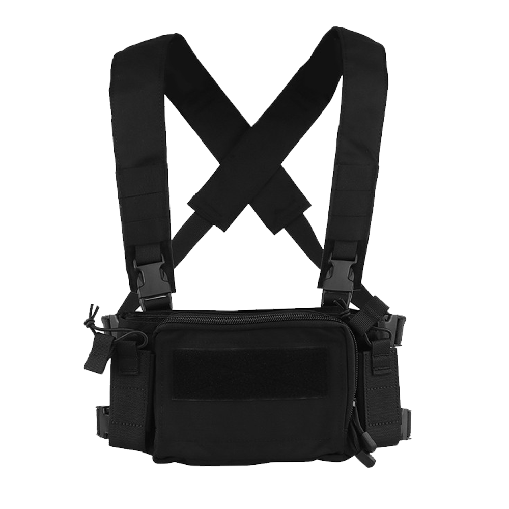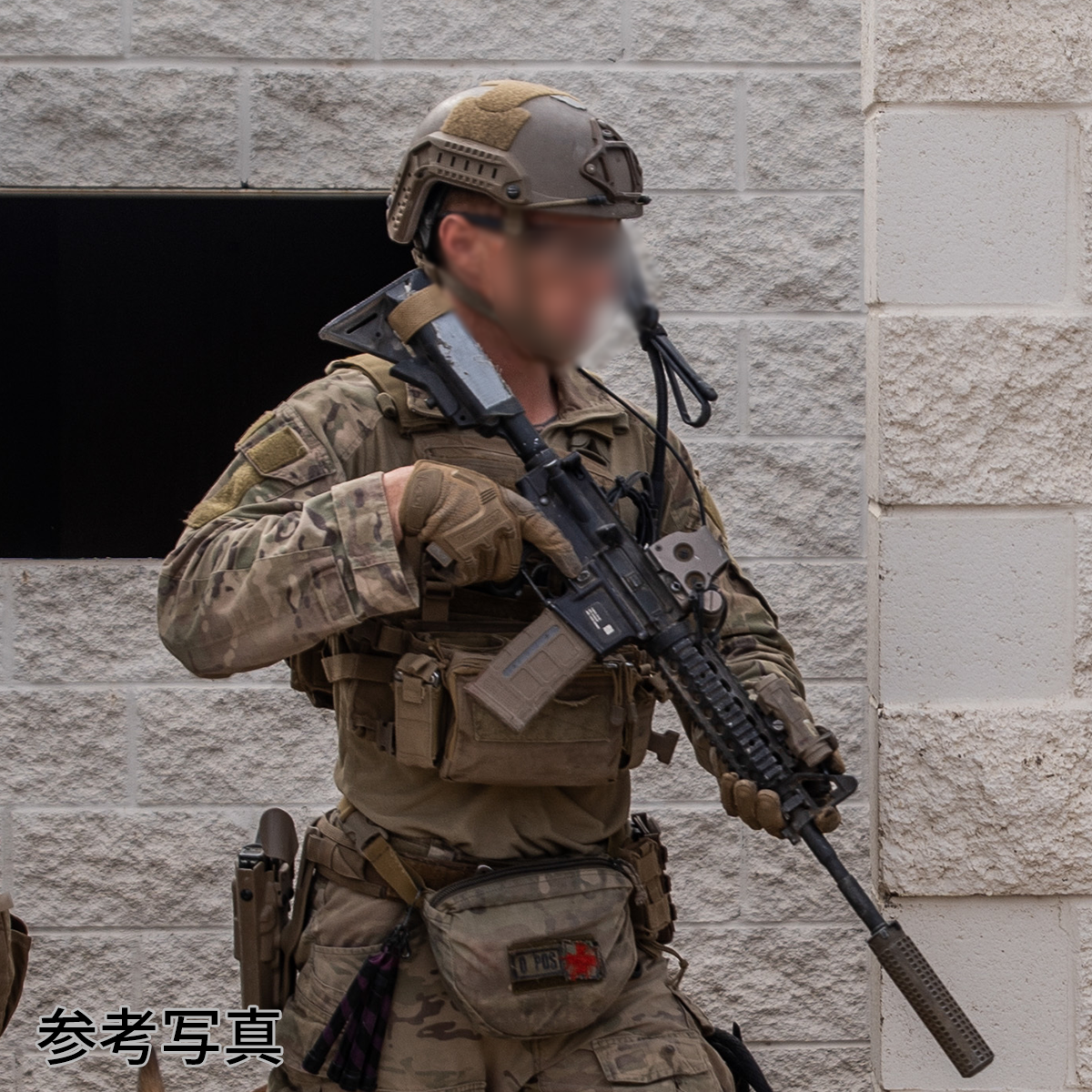 M4のマガジンを3本+ハンドガンのマガジン2本を傾向できるコンパクトなD3CRMタイプのチェストリグです。M4マガジンはフラップなどはありませんが内部に樹脂インサートが入っており、程よいテンションでマガジンが保持されます。ハンドガンは上部にバンジーのフラップがあり重量があるガスブローバックガンのマガジンが脱落する心配がない他、素早いリロードが可能です。マガジン以外にもハンディタイプの小型ライトなども格納可能です。