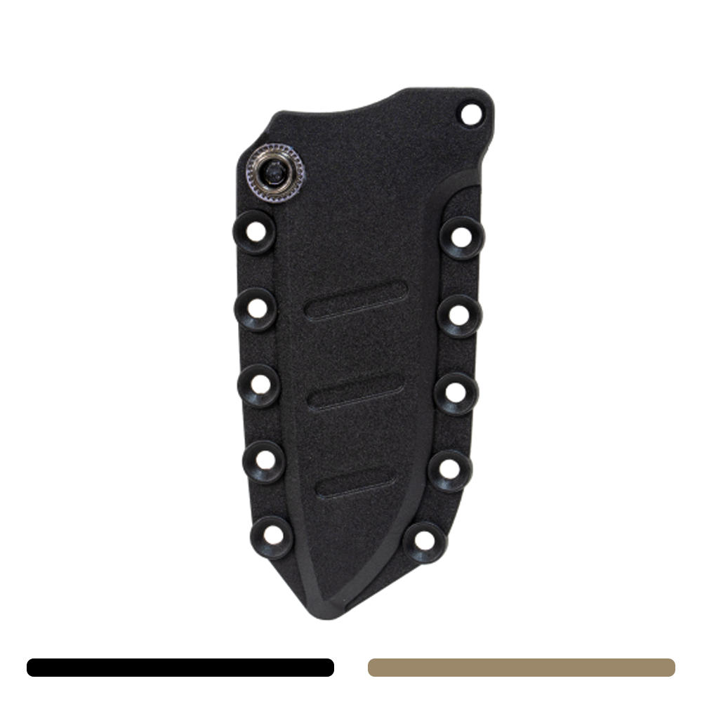 Adamasスタイルのトレーニングナイフ用シースです。ネジなどを通せるようになっており、MOLLEクリップやベルトループアダプターを使用することでプレートキャリアやベルトに装着できます。また固定用のホールも複数空いているので角度をつけることも可能でカスタムの幅が広いのも特徴です。
