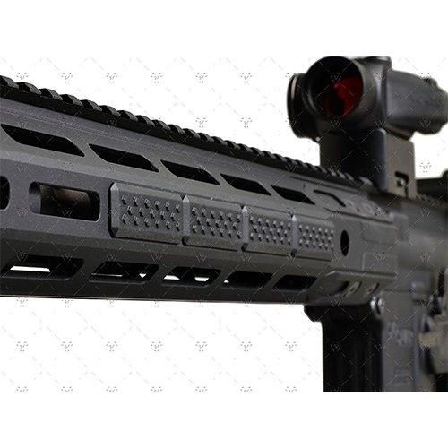アメリカのカスタムパーツメーカー「STRIKE INDUSTRIES」製のM-LOKのスリットに取り付けるパネル式の滑り止めカバーです。差し込むだけなので工具なしで取り付けが可能です。