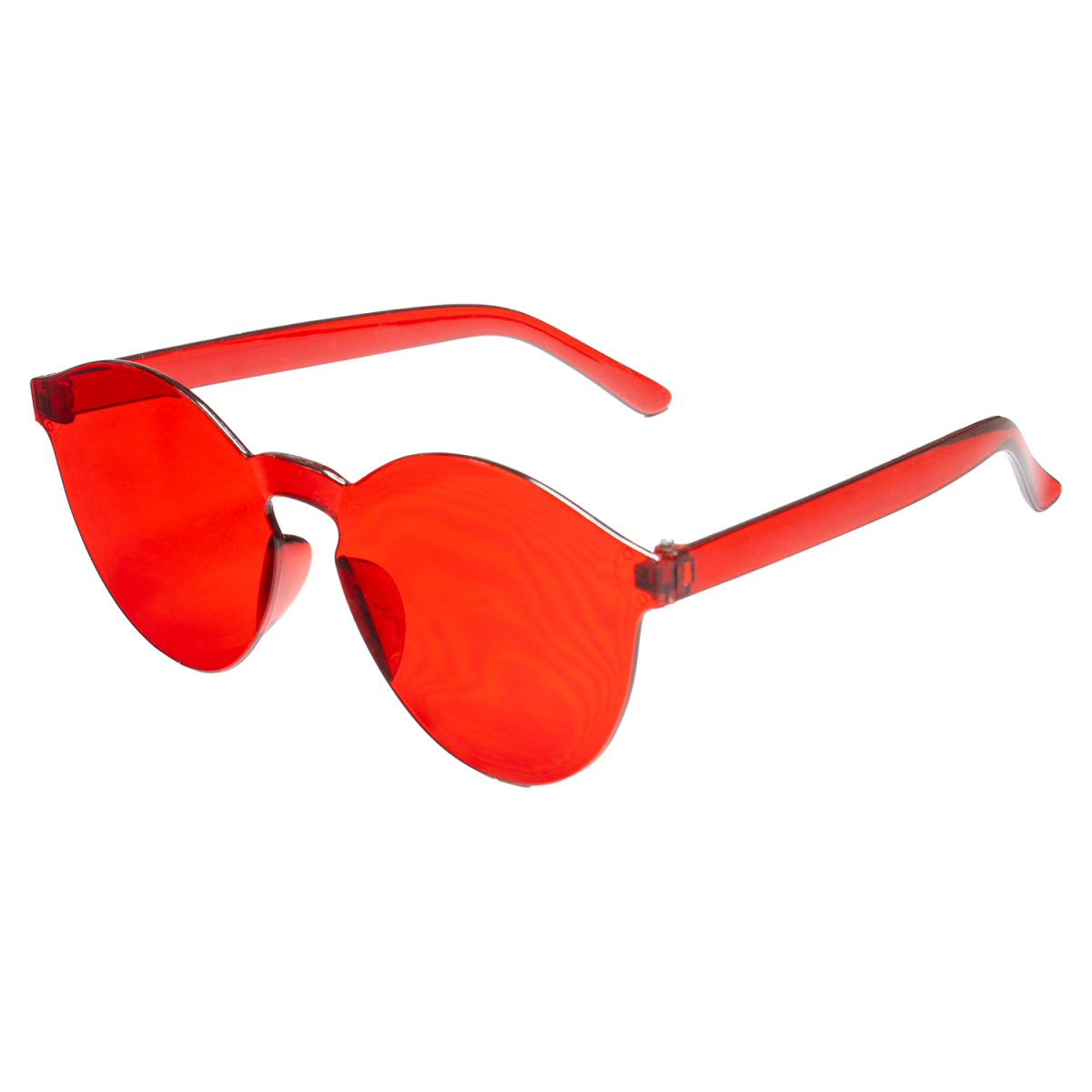 赤色のサングラスです。保護機能はないのでセーフティなどフィールド以外でご使用ください。