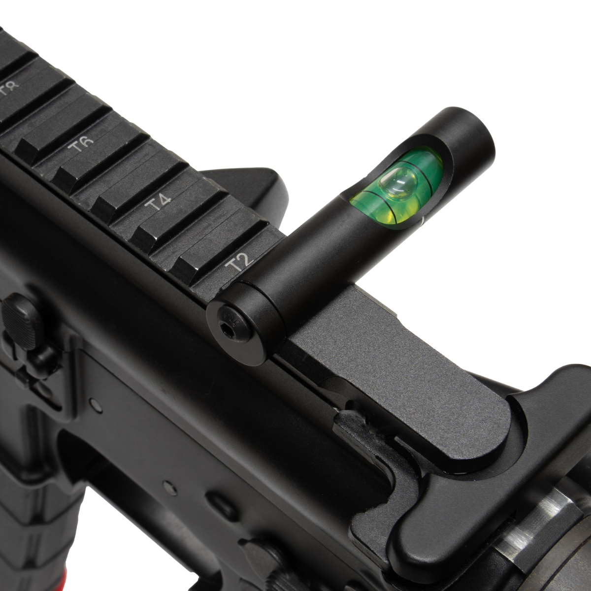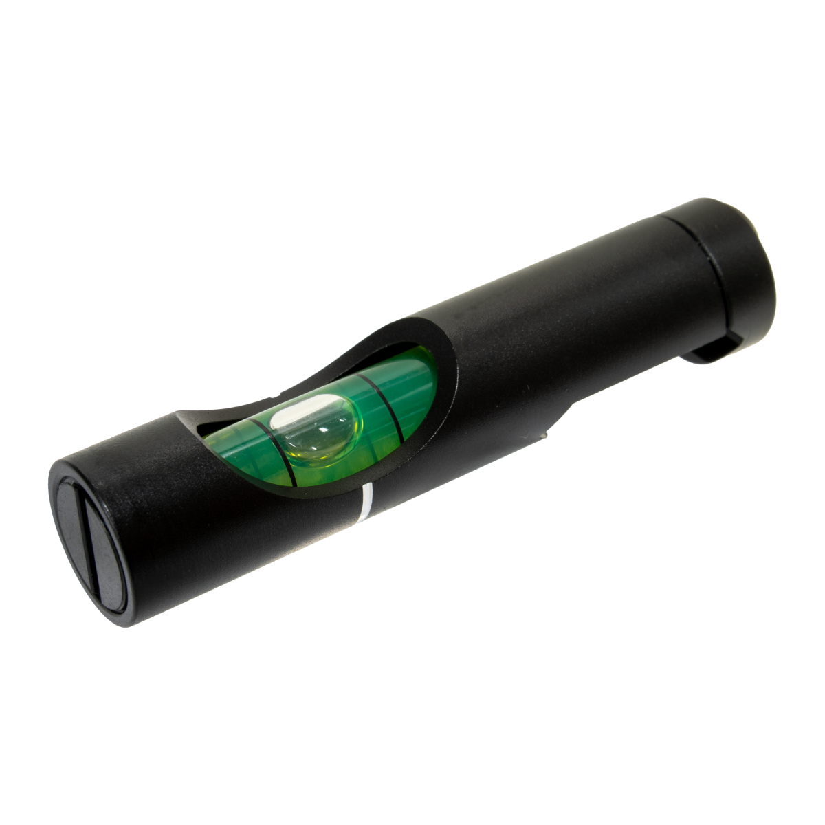 取り付けたレールによって僅かに傾くため、下部のイモネジで水平器本体を微調整可能になっています。