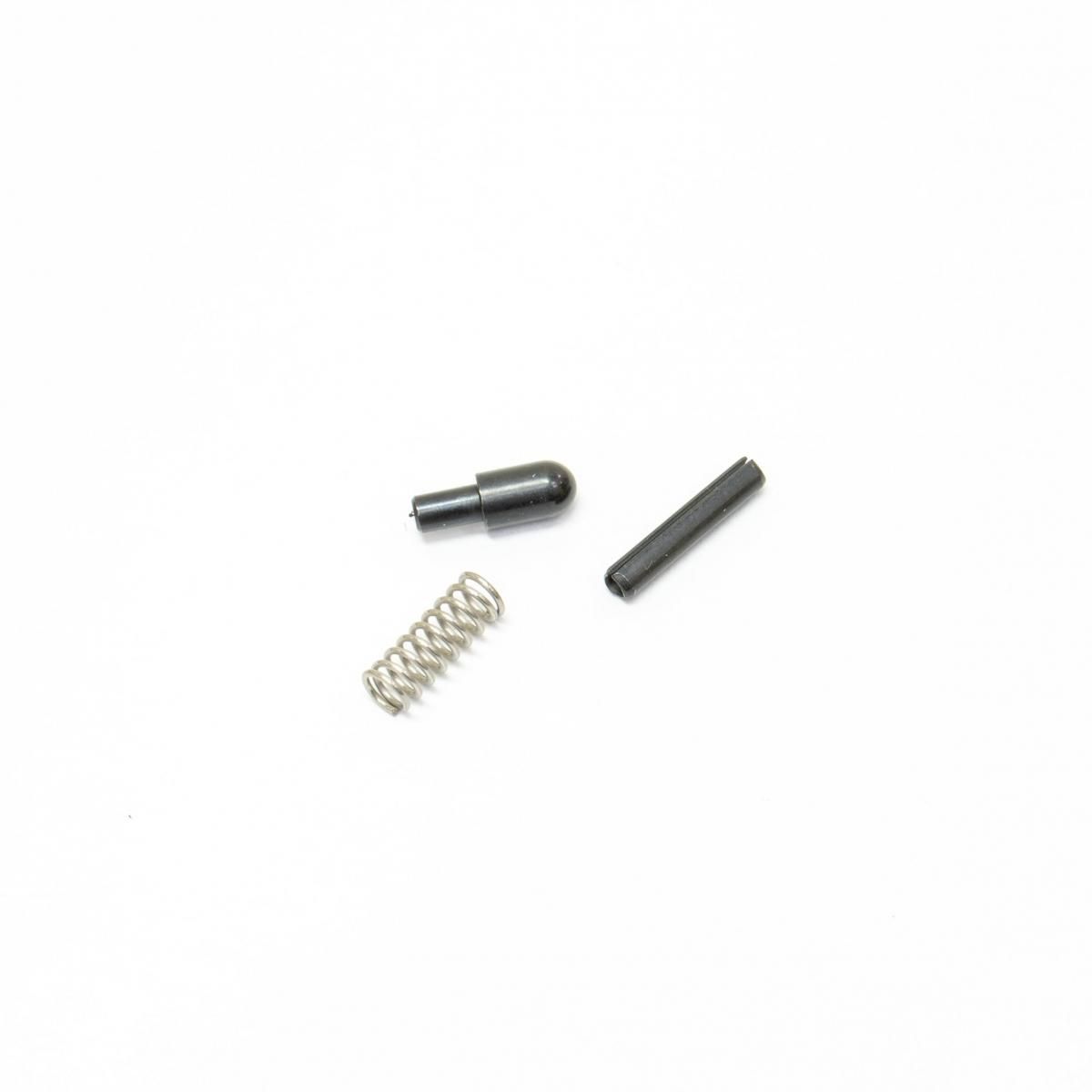 BW-15J純正のボルトキャッチアッセンブリーです。ボルトキャッチロールピン/ボルトキャッチスプリング/ボルトキャッチプランジャーの3点セットです。ボルトキャッチロールピンはレシーバーの相性によってはサイズが合わず使えない場合があります。