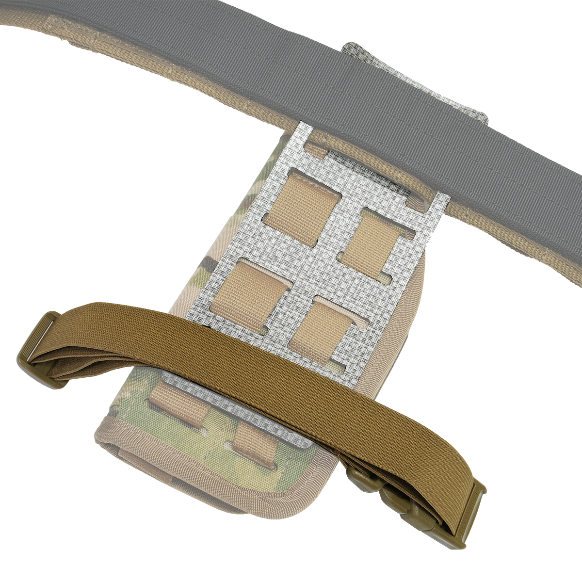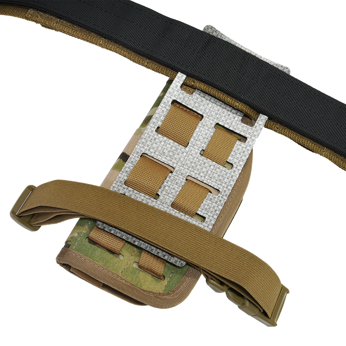 ベルトから下の位置のローライドポジションにポーチやホルスターを取り付けできるMOLLEオフセットアダプターです。