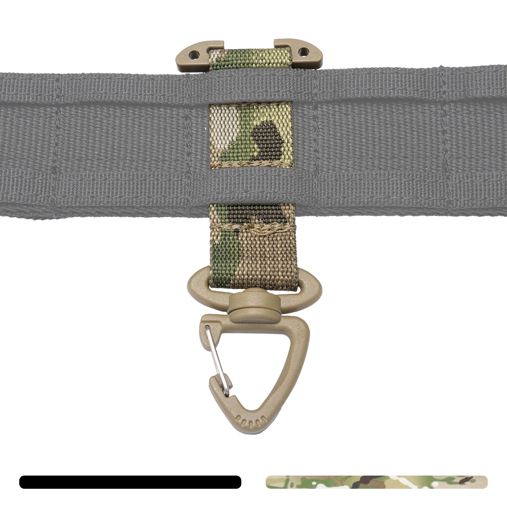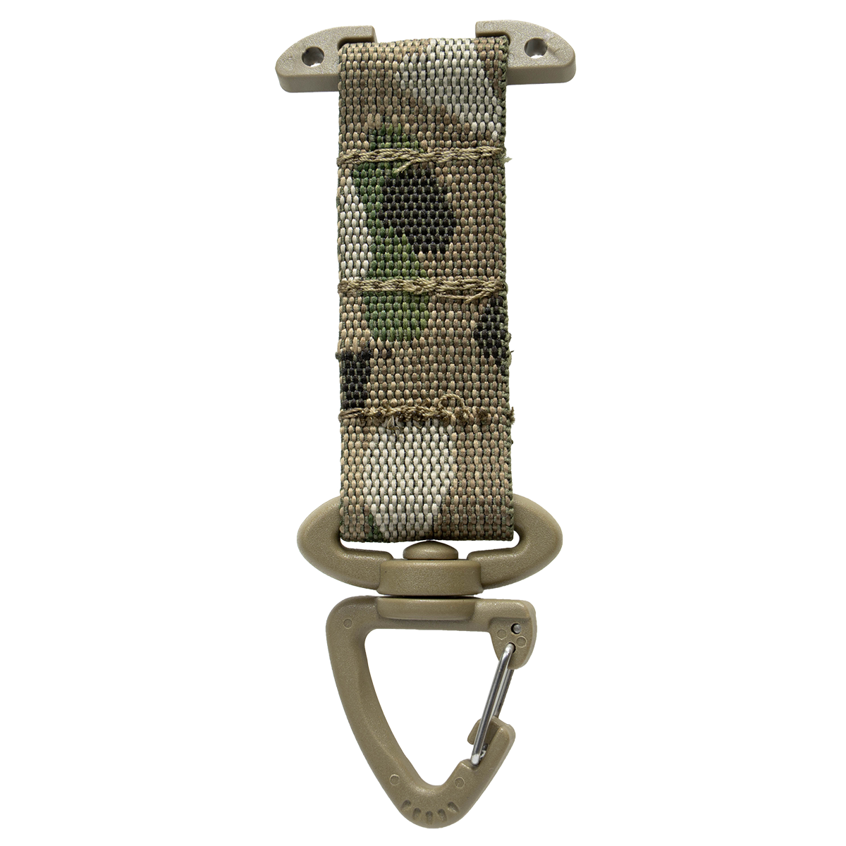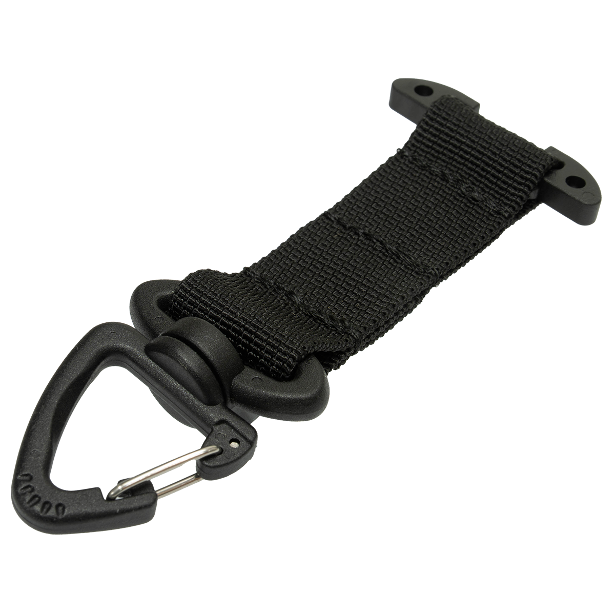 タクティカルグローブのループに引っ掛けることで一時的に保持可能な他、鍵などの小物の携帯にも適しています。