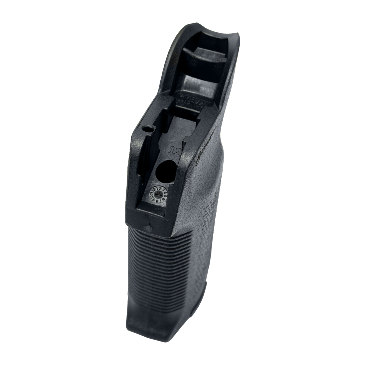 一般的なグリップと比べて垂直に近い角度に設計されており、トリガーからストックまでの距離(LOP)が短い銃で使いやすくなっています。グリップの蓋を開けることで小物を入れることも可能です。