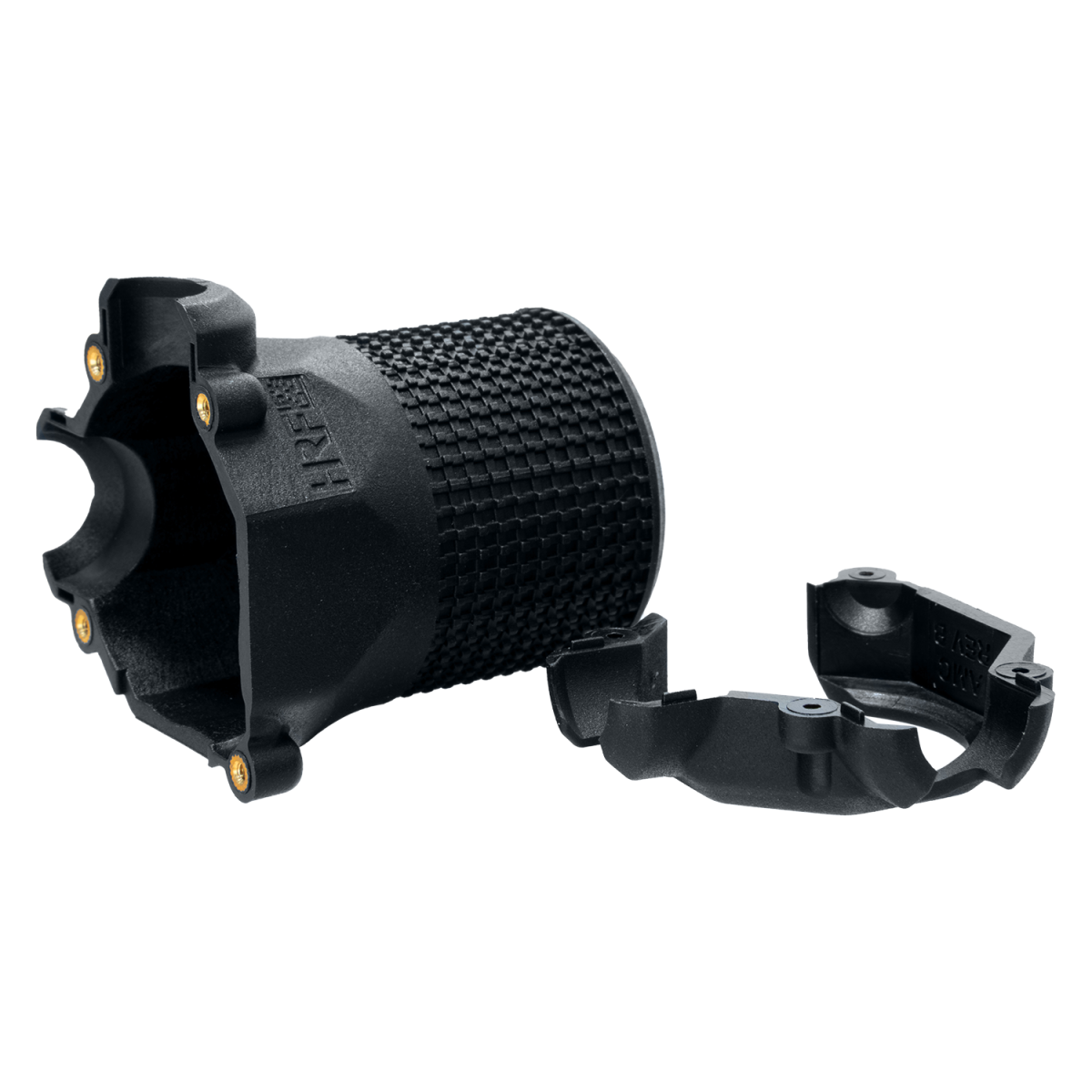 HRF AMCスタイルのブースターに対応した保護カバーです。ブースター外周はラバー製カバーで保護されていましたが、調節ダイヤル部分は露出していました。本製品に交換することで、ダイヤルまでしっかりとカバーされ、より高い保護性能が得られます。