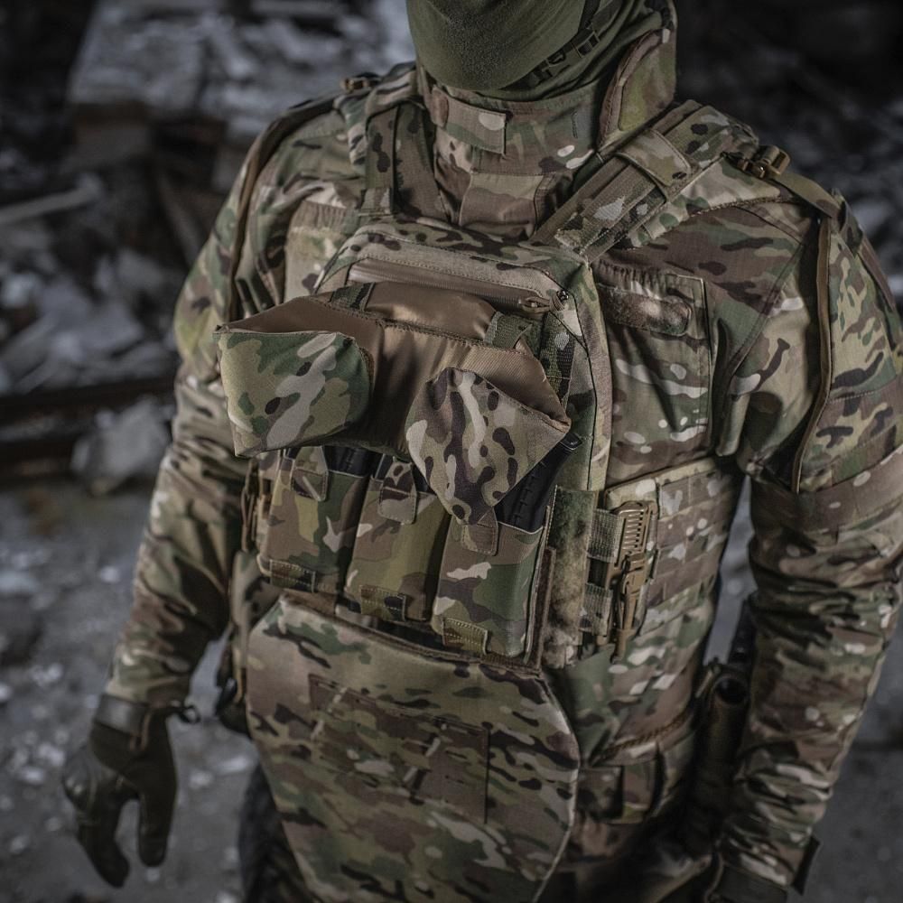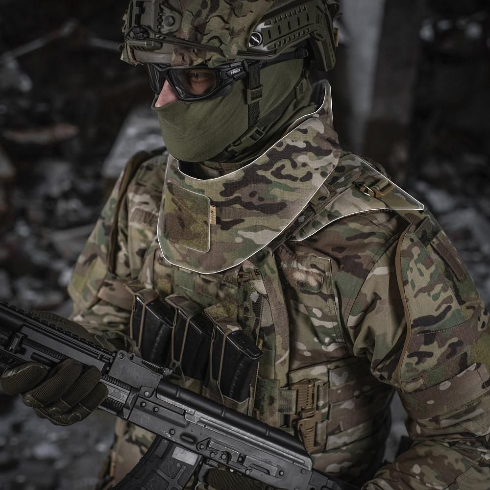 M-TACのQRSプレートキャリア用に設計された、首と背中上部を360度破片から保護するコンパクトな着脱式モジュールです。