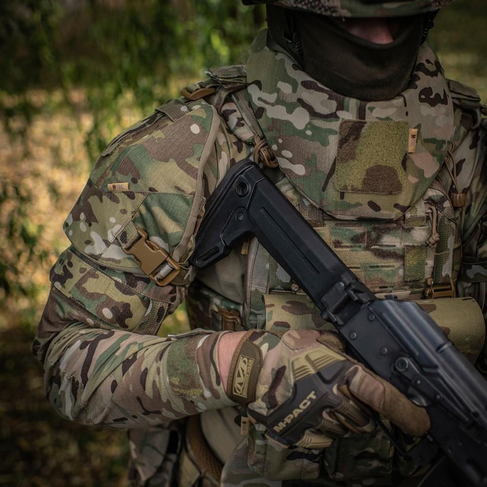 M-TACのQRSプレートキャリア用に設計された、肩を破片等から保護するショルダープロテクターです。摩耗に強く耐久性に優れた500Dコーデュラナイロンで作られています。