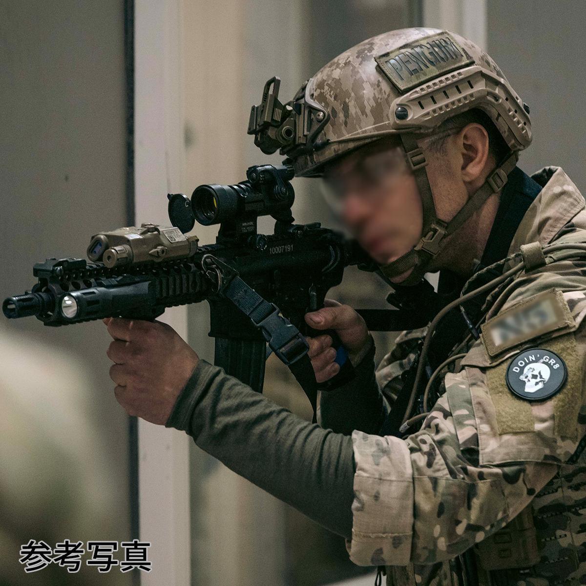 20mmレールに取り付け可能で後部のスイッチが斜傾しているためハンドガードを握りながら押しやすい構造になっているのが特徴です。
