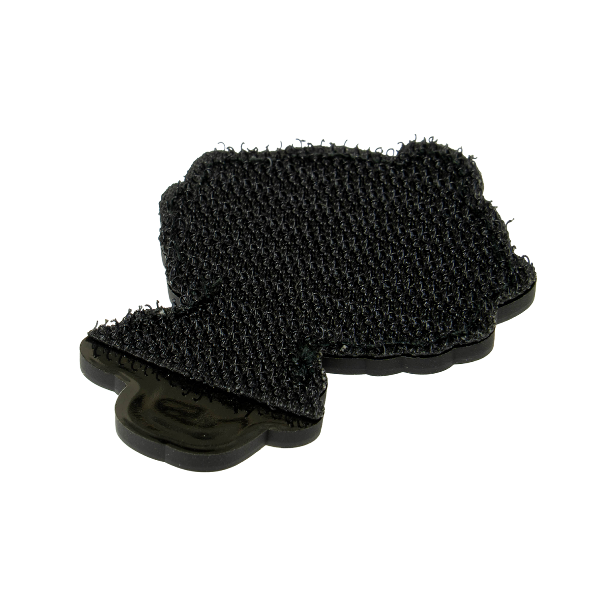 裏側がベルクロになっておりプレキャリやバックパックなどのベルクロ面に装着可能です。